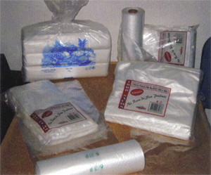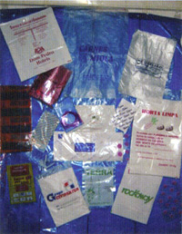 Sacos de plástico em Alta Densidade (AD) e Baixa Densidade (BD).